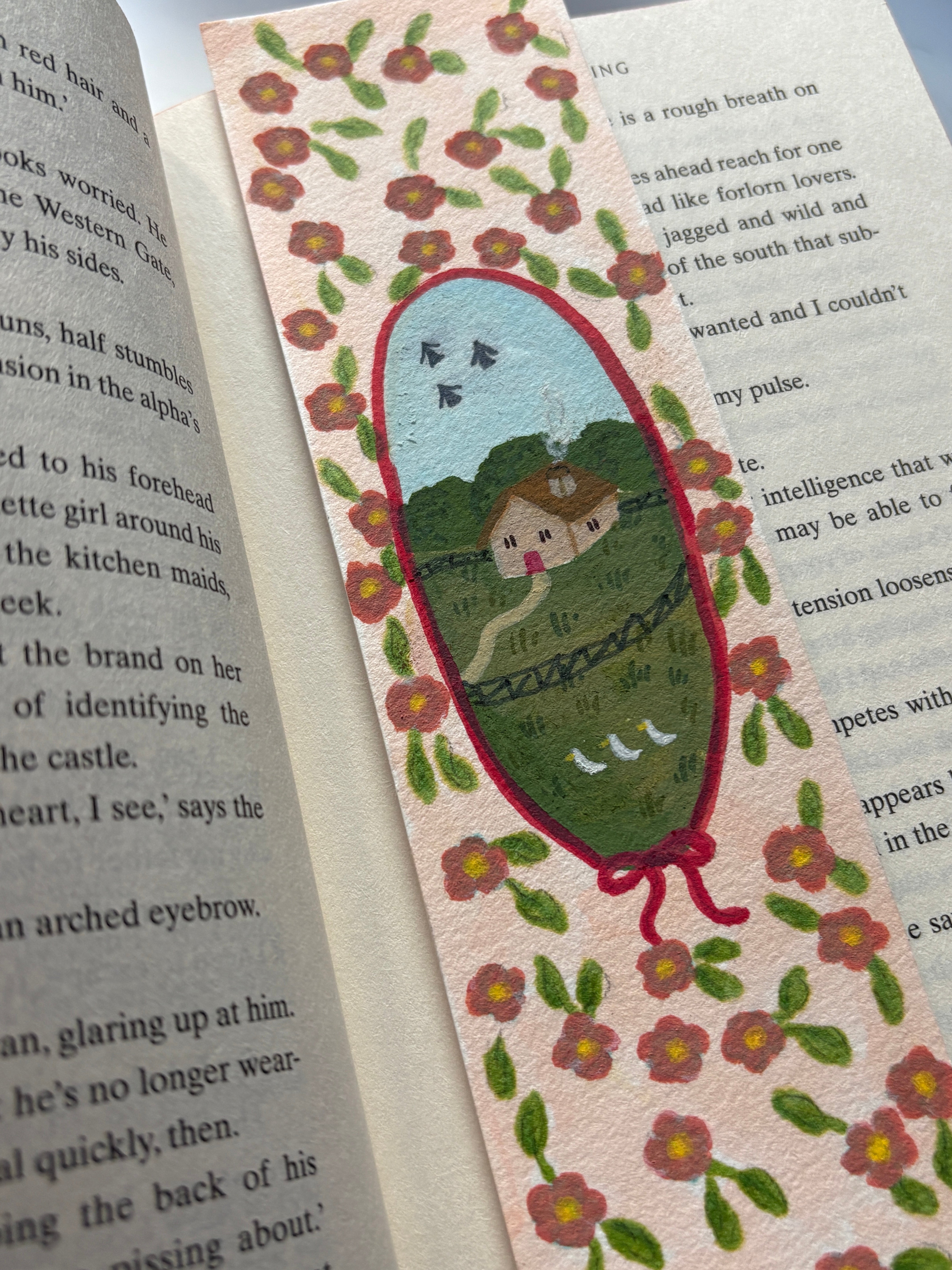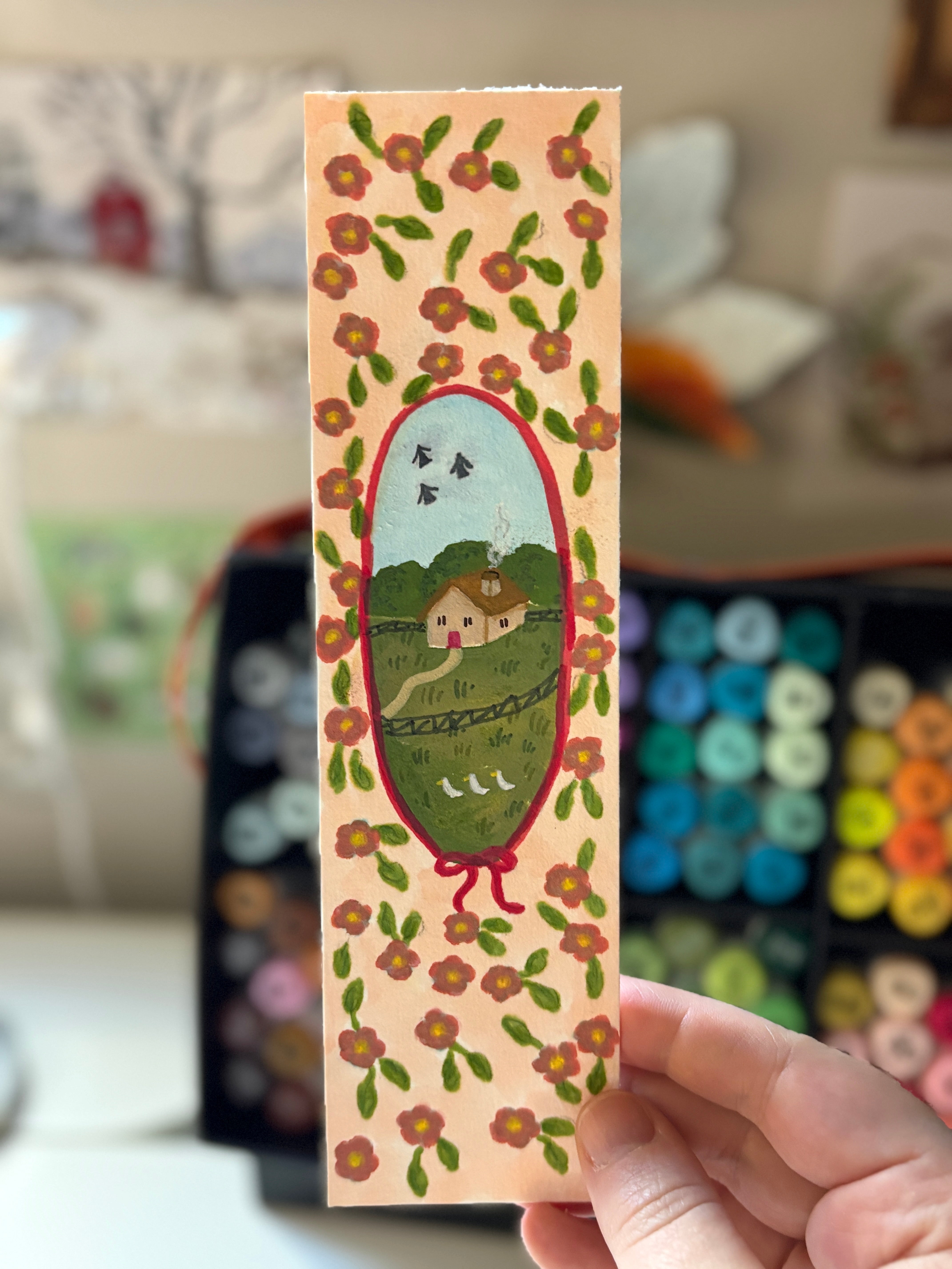 This adorable bookmark measures 2x8 inches and is beautifully hand-painted on watercolor paper.