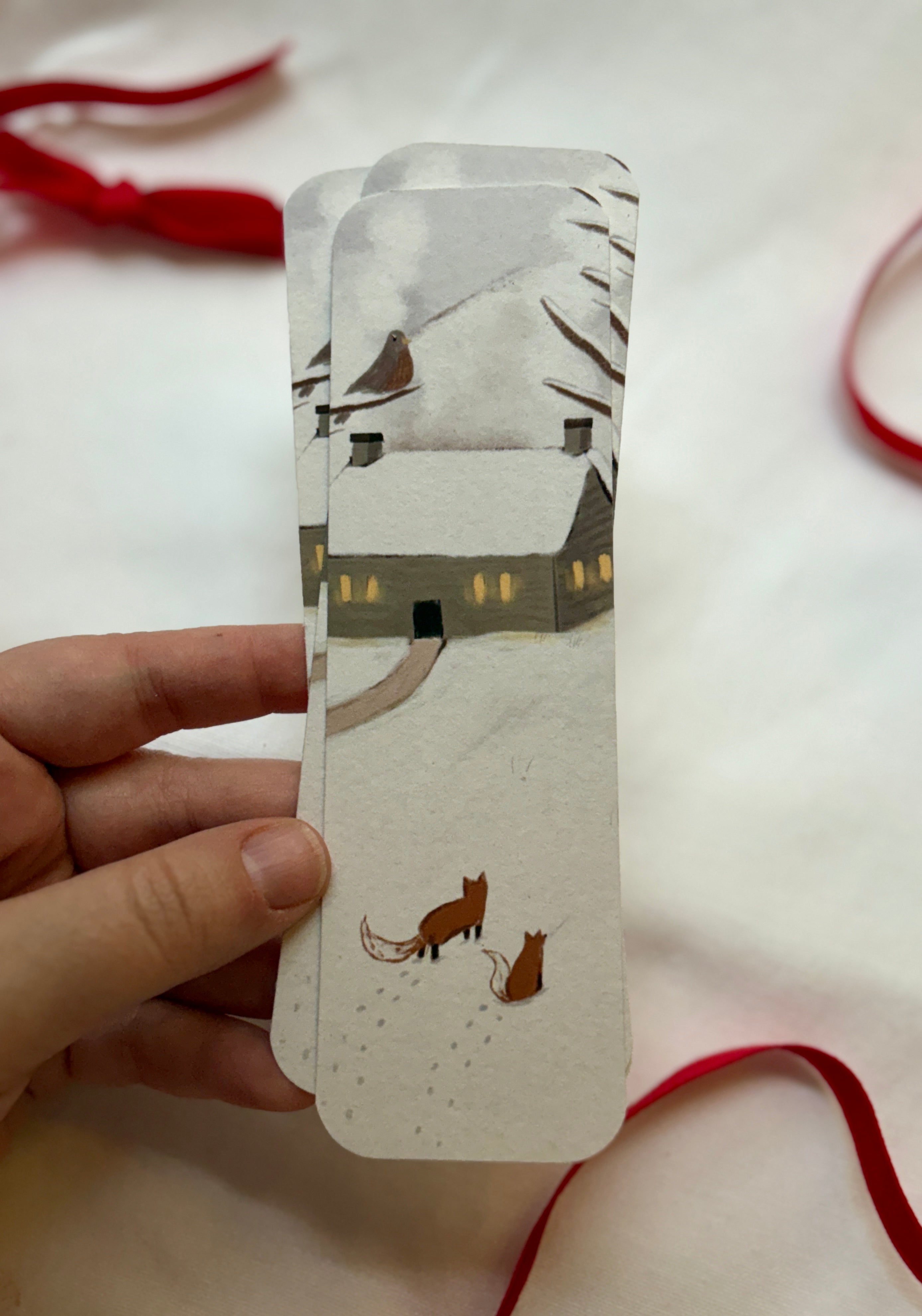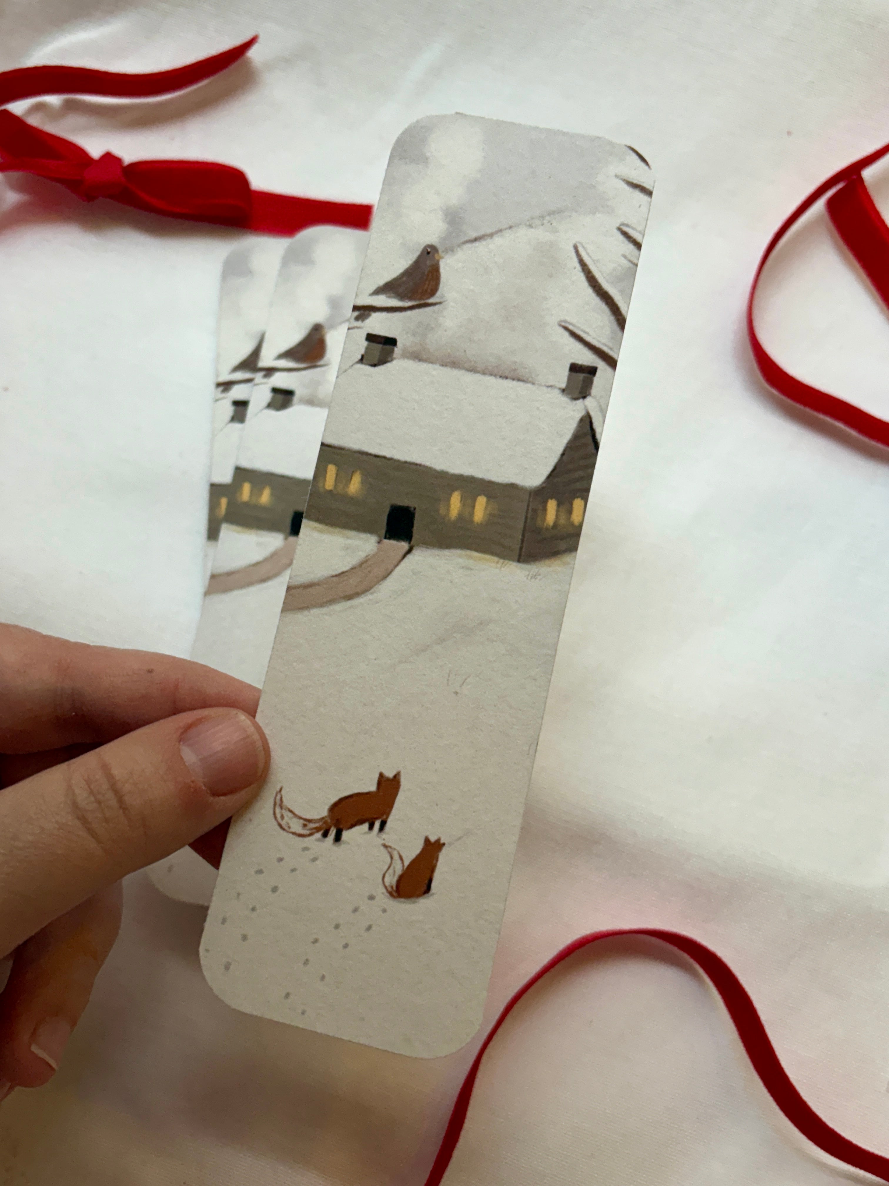 Crafted on high quality fine art paper, this charming bookmark measures roughly 2 by 6 inches—the perfect size to mark your place while adding a touch of festive cheer to your reading routine.