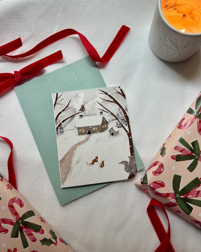 Share warmth this season with this thoughtfully designed greeting card. Measuring 3.8x4.5 inches, it's created from quality thick fine art paper and paired with a matching 4x6 envelope. A heartfelt way to connect with loved ones during the holidays.