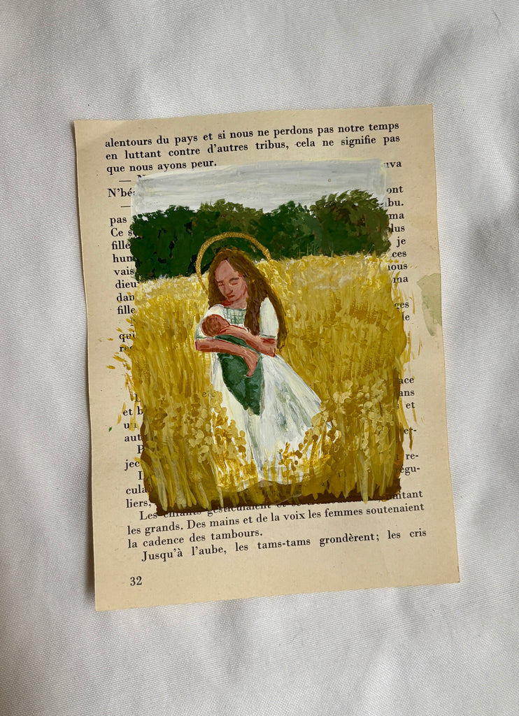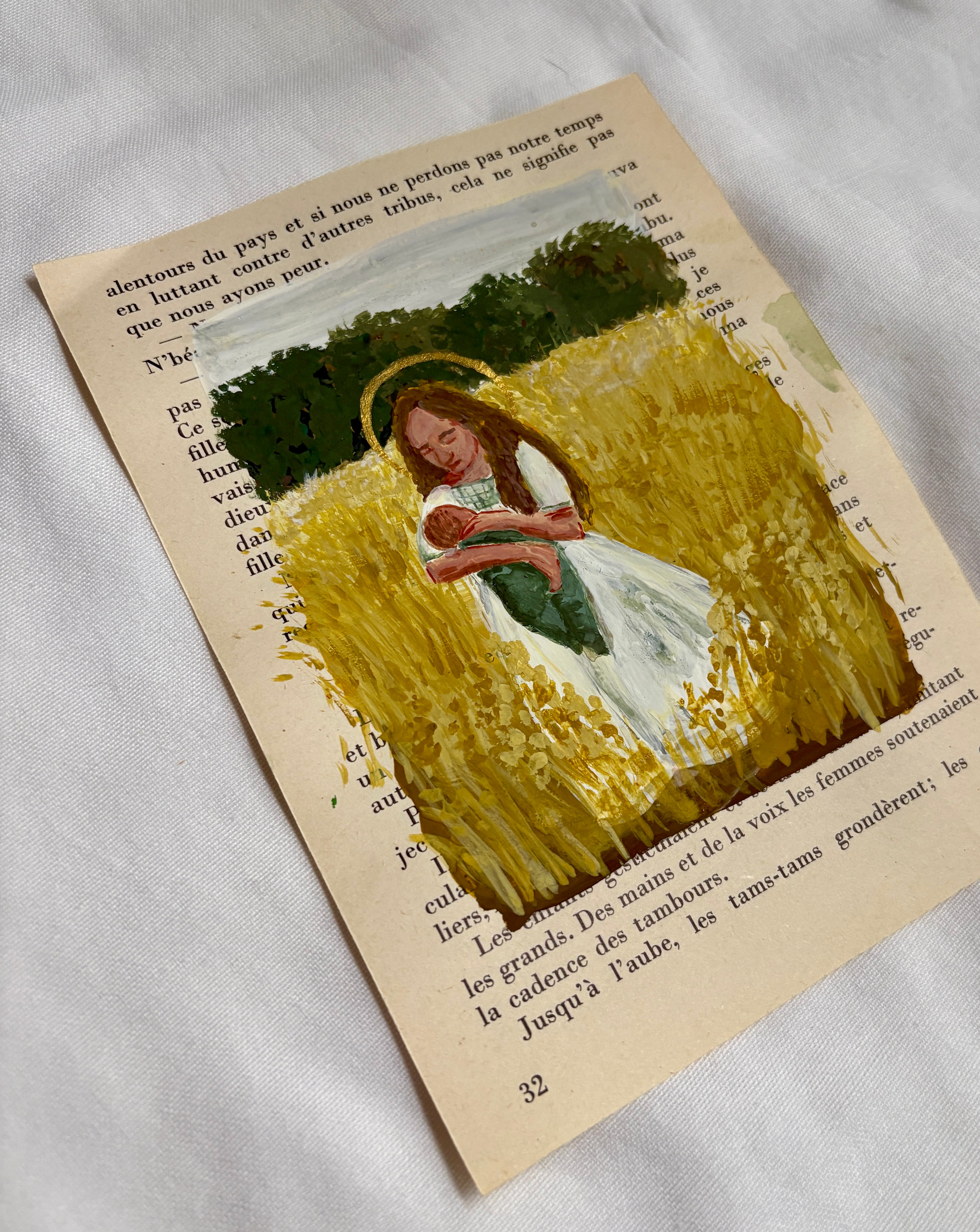 5x7 acrylic painting on a vintage book page. This was painted in 2022.